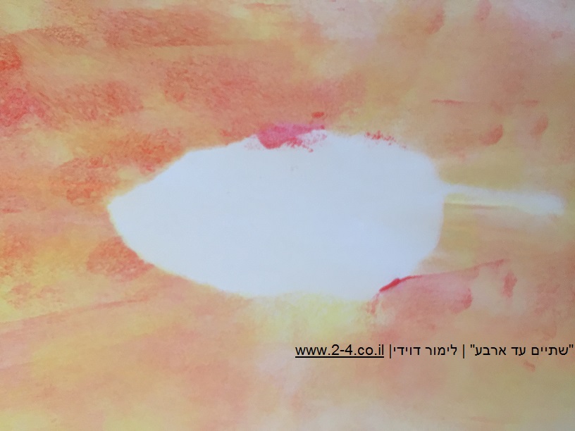 הדביקו את העלה על הדף עם מעט דבק סלוטייפ, ובקשו מהילדים לצבוע מסביב לעלה וגם עליו. לאחר מכן הסירו את העלה.