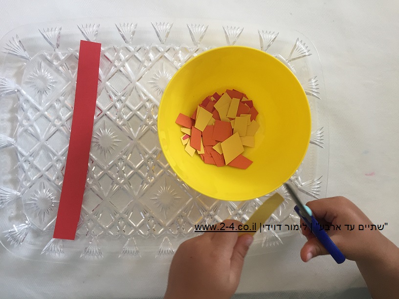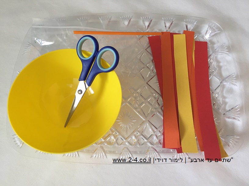 דפים בצבעי המדורה: צהוב, אדום וכתום חתוכים לרצועות